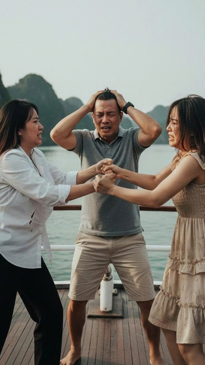 Lưng tôi chạm lan can. Phía sau là biển đen ngòm, sóng vỗ dữ dội. Chỉ cần ngã ra — là không ai biết chuyện gì đã xảy ra.
