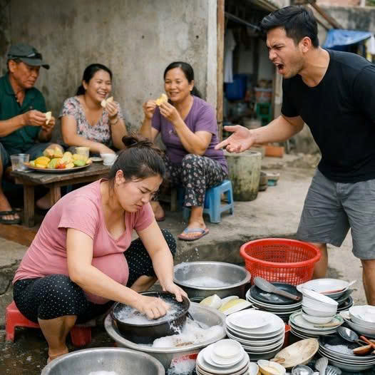 “Có mấy cái bát mà làm gì căng. Đàn bà bầu vận động cho dễ đẻ…”